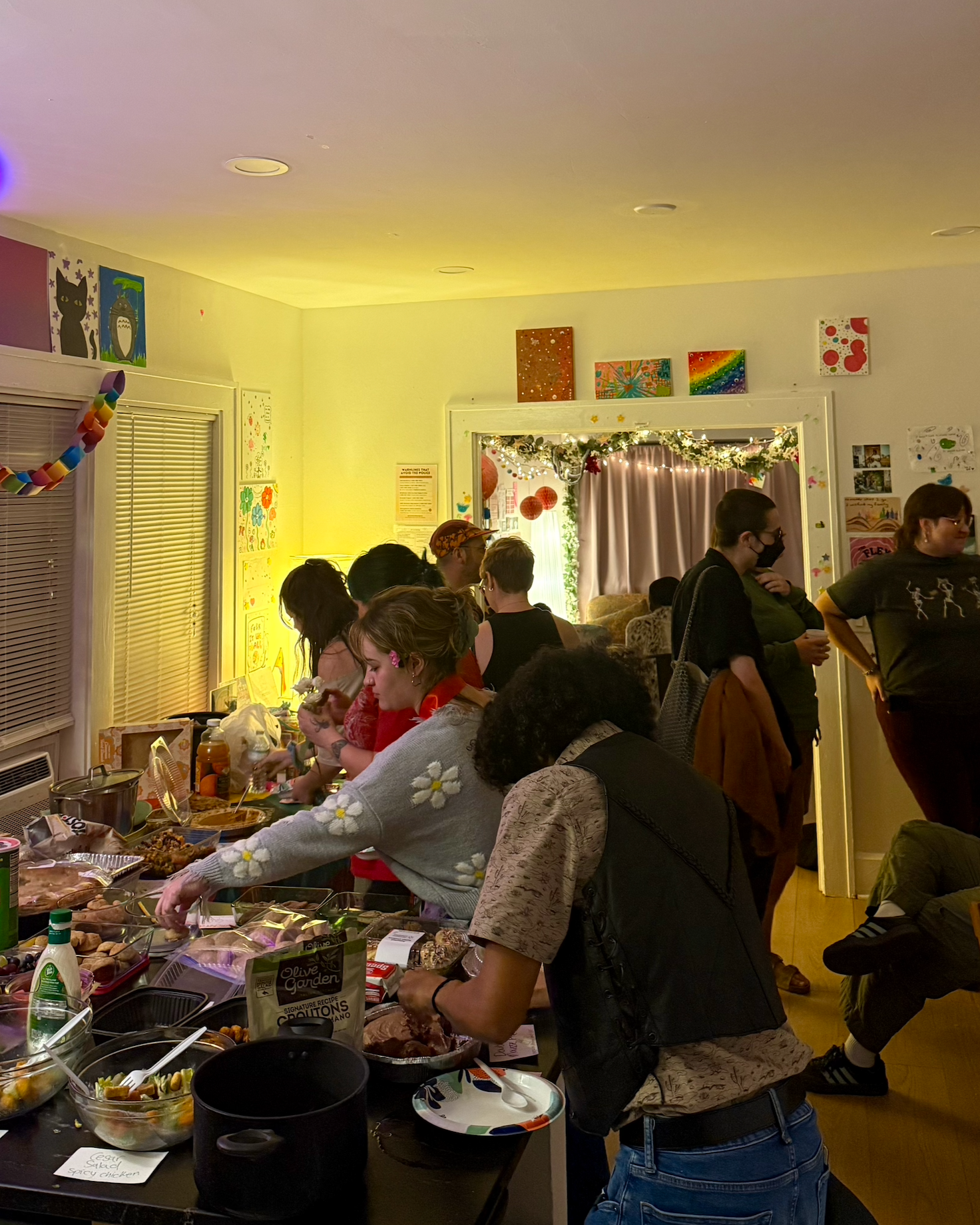 The Nest has a fully stocked kitchen, a library room including banned books, a maker’s space with free arts supplies, a “calm-down” room, a community garden, a pay-what-you-can washer and dryer, and more.